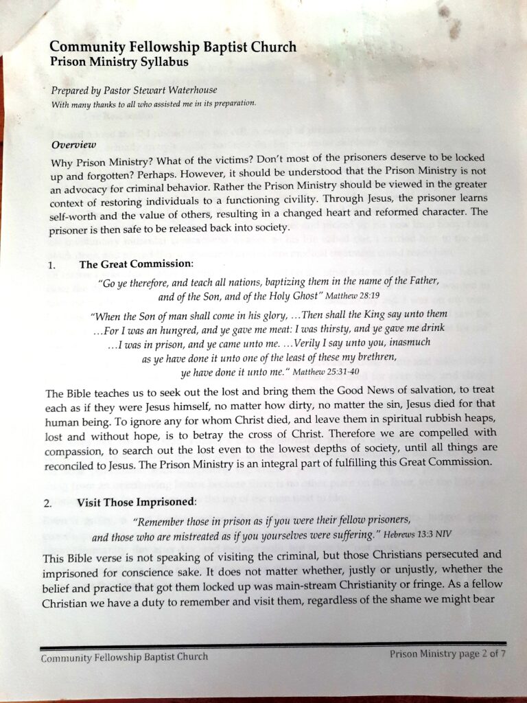 You may copy this to make your own Prison Ministry Syllabus: